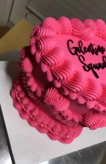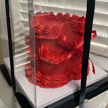 Vintage style cake heart shaped in one solid color. Add additional colors for $5 each. This cake feeds up to 8 people.