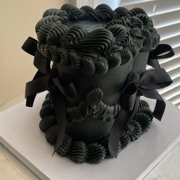 Vintage style cake heart shaped in one solid color. Add additional colors for $5 each. This cake feeds up to 20-28 people.