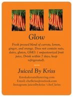 Benefits: Glow is a power house juice packed with vitamin A and C and provides enough of these vitamins for your daily intake. Glow contains carotene a(n) essential nutrient to help maintain good health. This bright glowing juice helps smooth skin and improves your vision, gives you natural energy, has antioxidants, may help restore your liver, and serves as a multivitamin. The oranges help alkalize the body, while providing vitamin B9, and may help with kidney stone prevention.