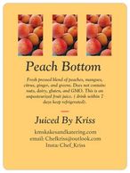Fresh pressed blend of peaches, mangoes, citrus, ginger, and greens. Does not contain: nuts, dairy, gluten, and GMO. This is an unpasteurized fruit juice. ( drink within 7 days keep refrigerated).