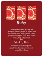 Fresh pressed blend of Ruby red grapefruit, lemon, ginger, an apple. Does not contain: nuts, dairy, gluten, GMO. ( unpasteurized fruit juice, drink within 7 days, keep refrigerated).